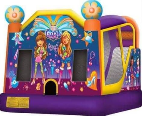 Our girl thing C4 combo is one of our most popular all rounder castles. This beauty features a big bounce area, inflated basketball ring, climb and good sized slide. Also features full roof for rain and sun protection.