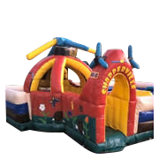 Our Chopperville combo castle is a great option for the under 4s crowd. It packs a load of inflated features including colourful chopper! Easy viewing for parents with its unique design.