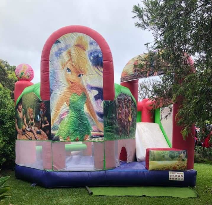 Our Tinkerbell themed jumping castle with slide is sure to please all little fairy fans!