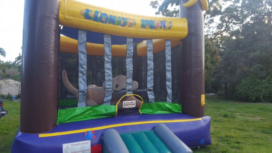 Our Lions Den bouncy castle is always a winner! With bright colors and inflated banana tress its sure to stand out at any party or event. This castle has a great sized bounce area with lots of room to move as well as an inflated lion which the kids love!