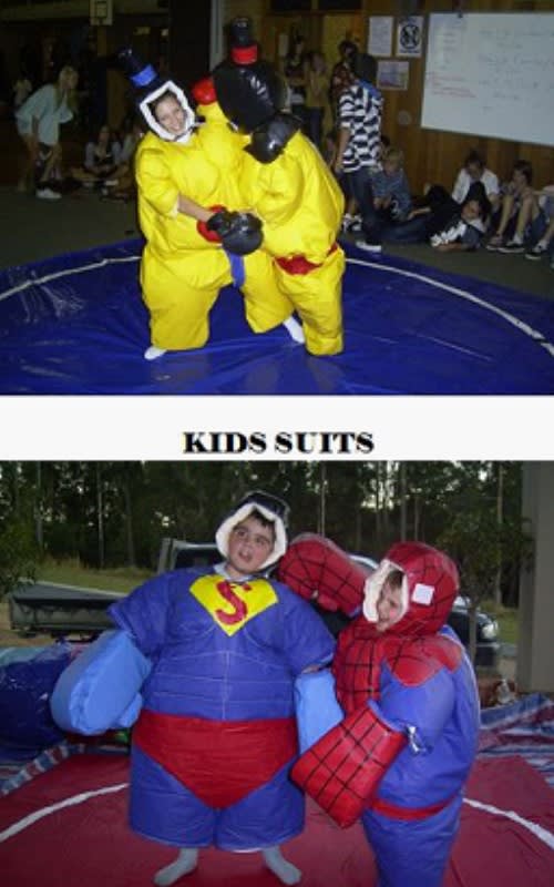 Our Sumo suits are a hilarious amusement that will have everyone in a big belly laugh. The kids look so funny in these suits and have a great time battling their mates and rolling around like a turtle on its back.