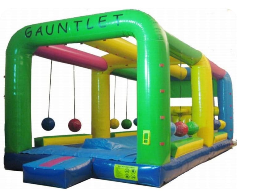 Are you ready to run the gauntlet?!?! Make your next family, church, or school event as a huge success with this out-of-this-world inflatable!! Have players line up on both sides to try and knock over the gauntlet runner as they try and sink as many baskets as possible in one minute! You better be on your toes and fast on your feet to avoid those wrecking balls!!!