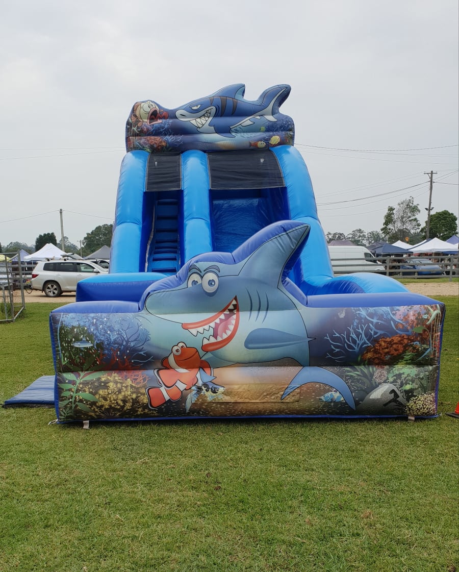 Our large Shark Slide is a sight to see from a mile away. This unique inflatable slide is always a stand out at any party or event. Can be used wet or dry this single lane slide is always a crowd pleaser.