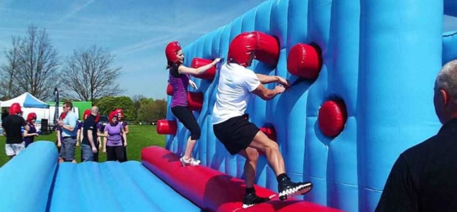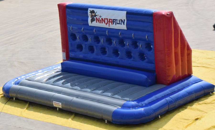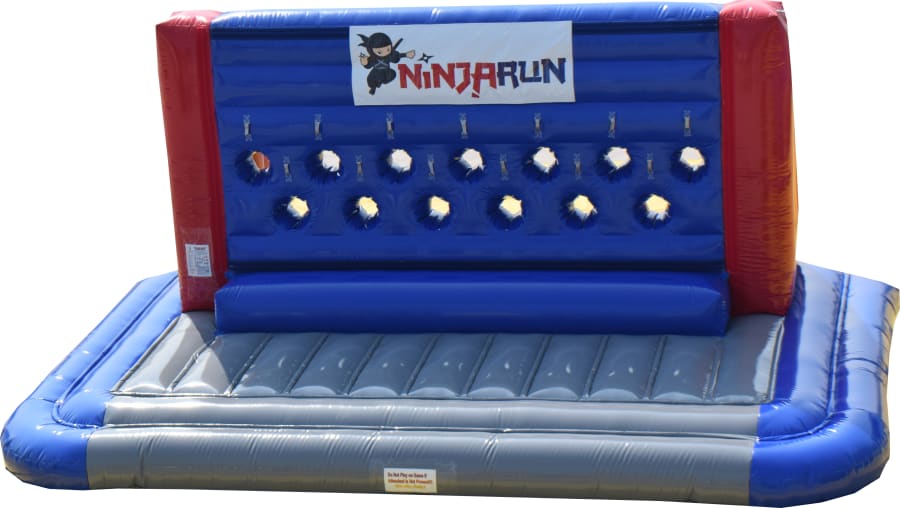 Our custom designed Ninja Noodle Wall challenge is a wipeout sucker-punch wall inspired challenge bound to keep the kids smiling from ear to ear all day long. Its a team effort game where riders must complete the ledge climb across the Noodle Wall while the other team tries to knock them off with pool noodles from the rear section of the inflatable. Team with the most players across wins!